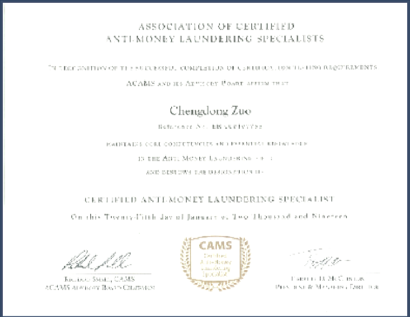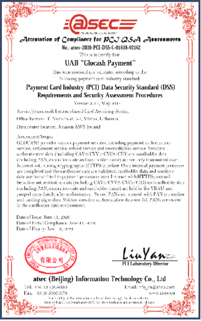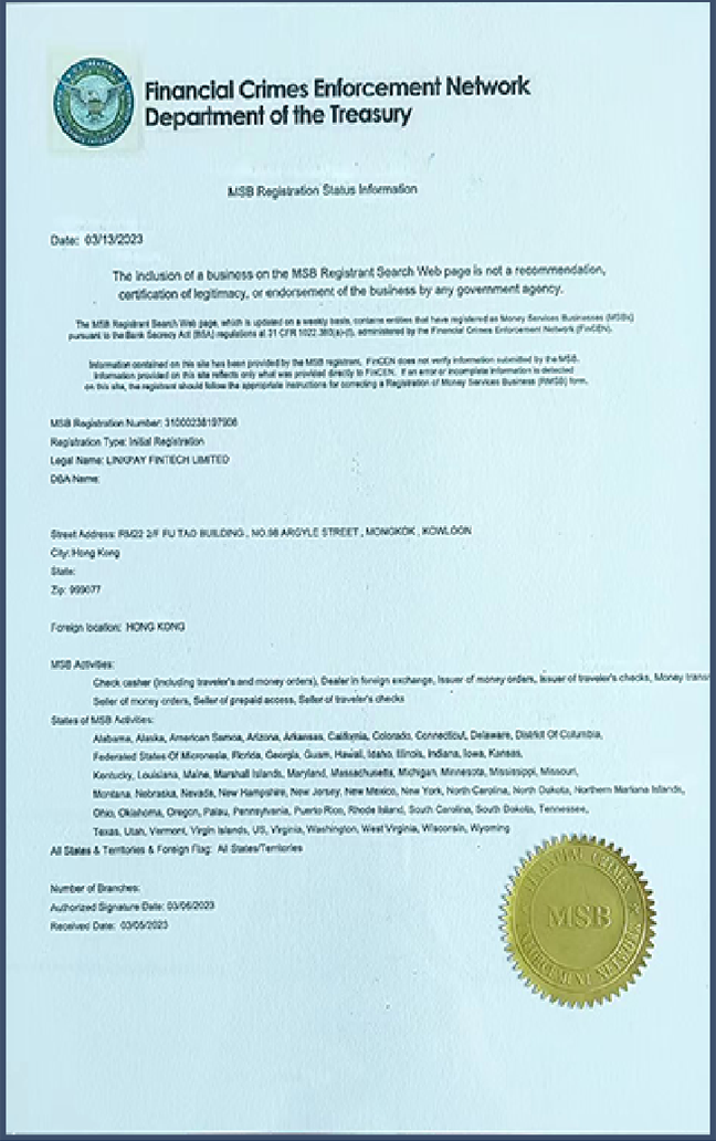 In Hong Kong MSO License, US MSB License, PCI DSS LEVEL1, ACAMS Member